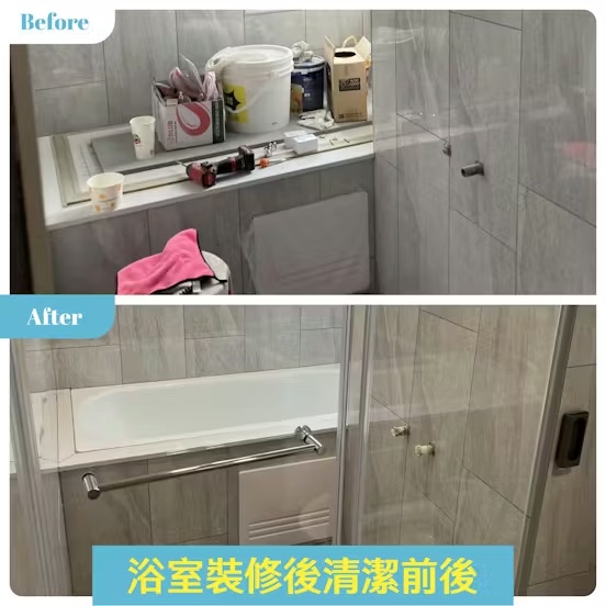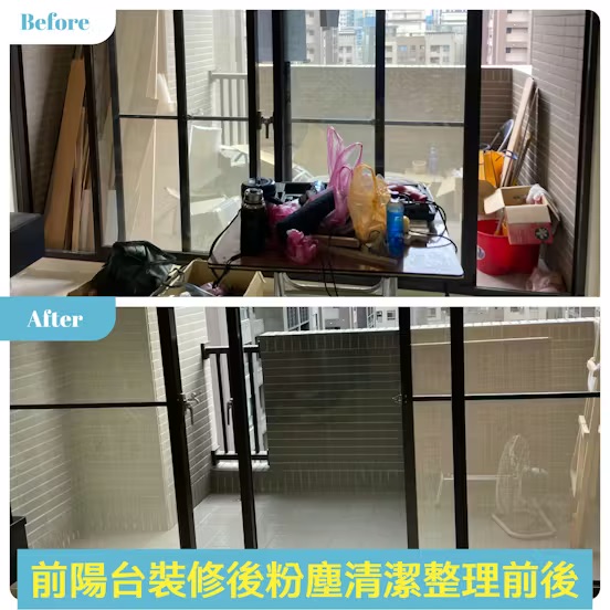 • 施工殘留水泥處理:常見的是陽台、浴室、廁所地板的水泥會殘留一整片淡淡的白色,專業清潔工需要特殊的技巧與清潔劑才能去除。