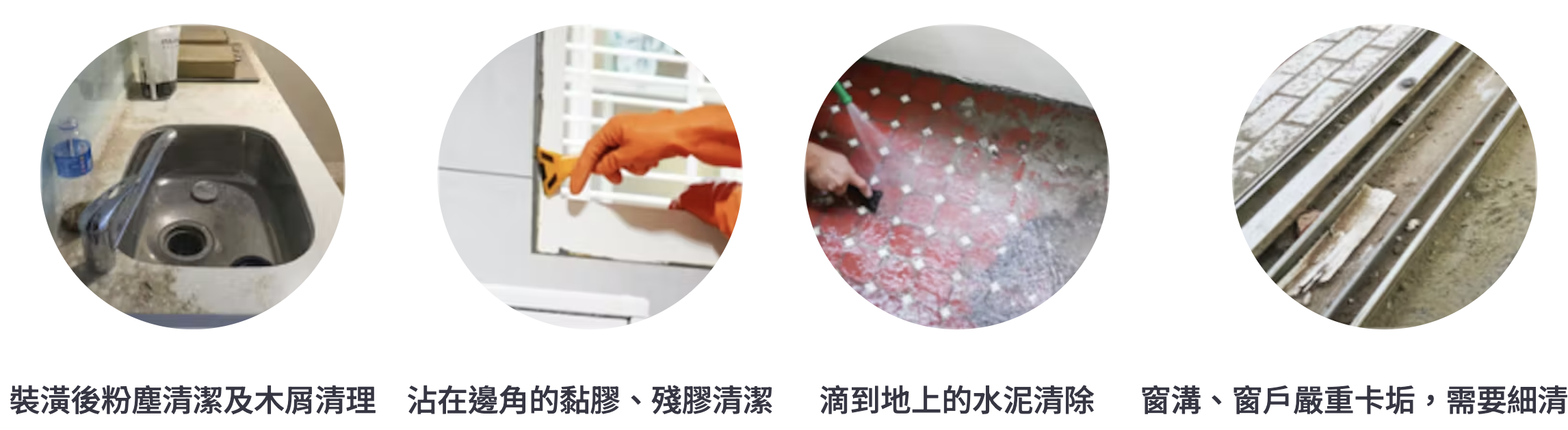 • 澈底清除裝修後的粉塵與殘膠,還原空間潔淨